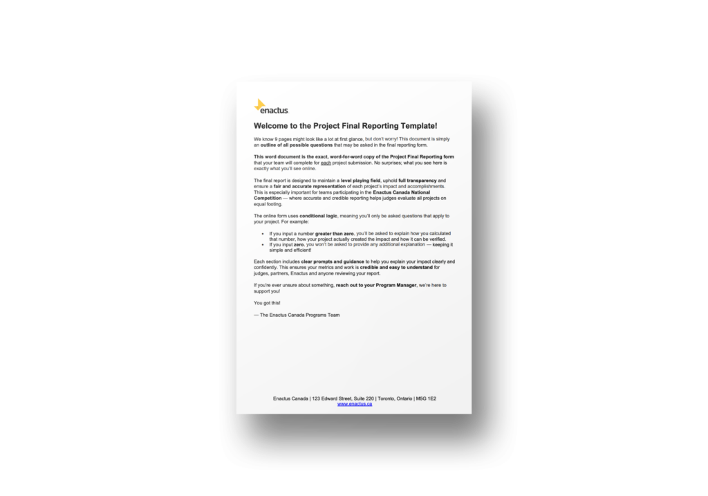 The official agreement for the 2025-2026 academic year, outlining the responsibilities of a team’s host institution and the minimum quality standards required to be officially endorsed by Enactus Canada.